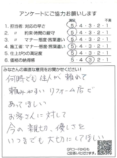 これからもお客様に寄り添えるリフォーム会社でいられるよう努めてまいります。