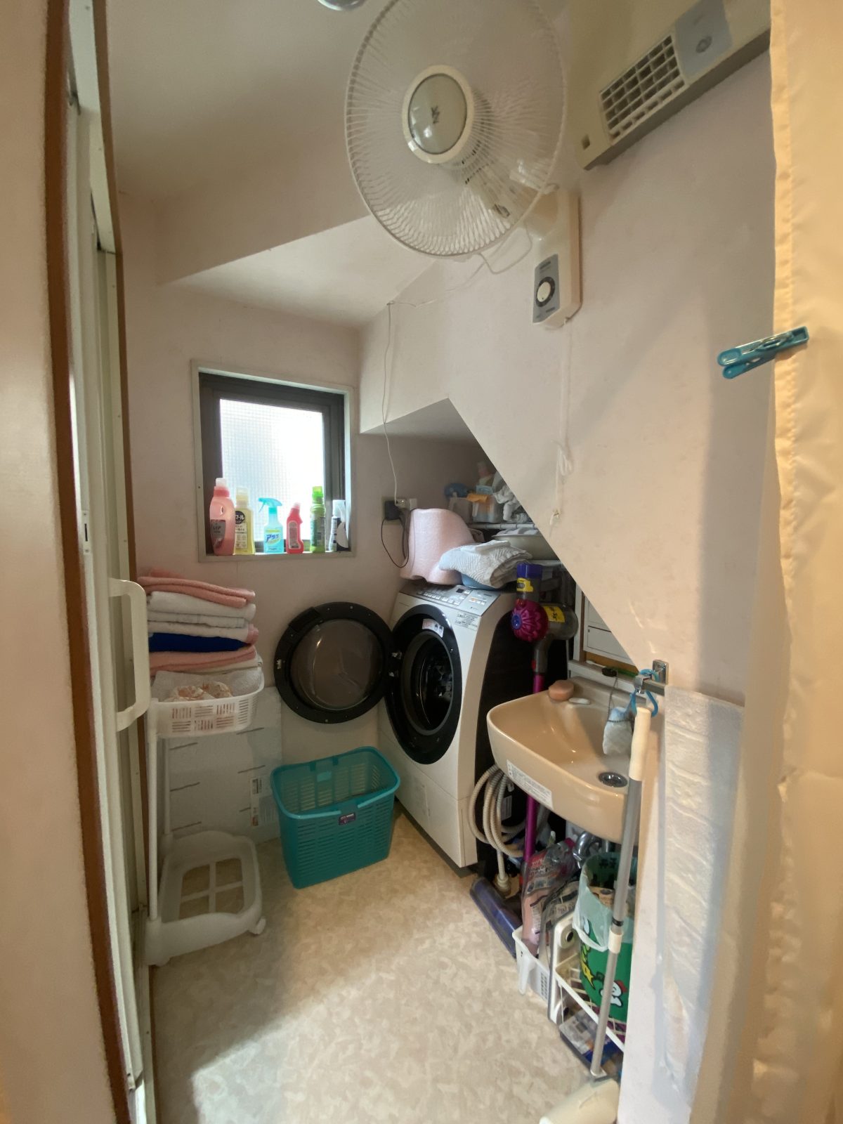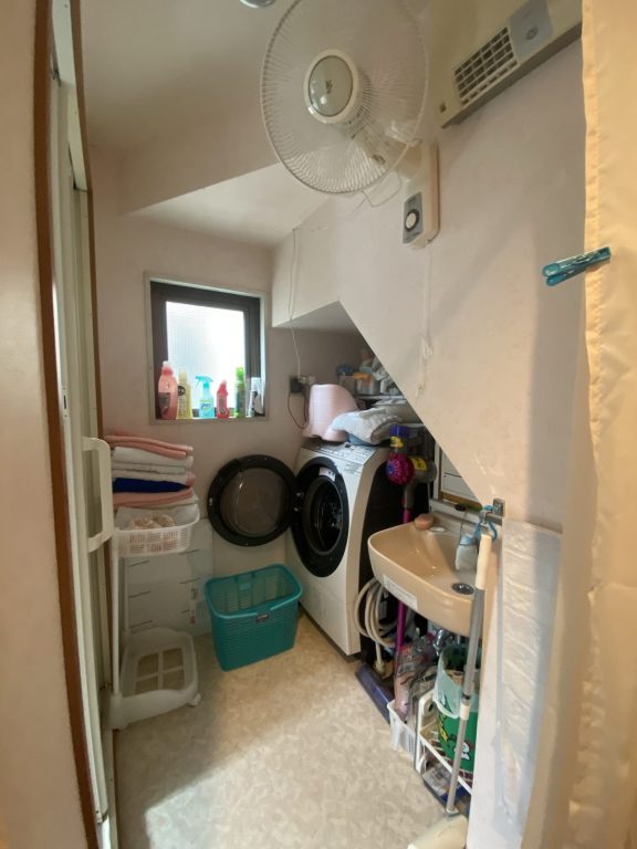 こちらのご自宅の脱衣室は細長く、洗濯機の上に壁があって洗濯物を出し入れする度に頭が当たっていたそう…。